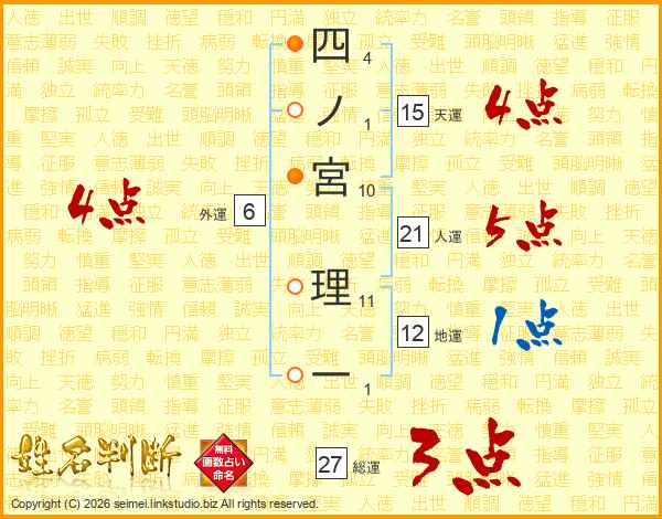 四(4画)ノ(1画)宮(10画) 理(11画)一(1画)