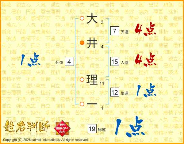 大井理一さんの天運は7画の4点!
