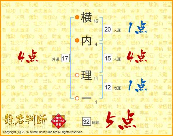 横内理一さんの総運は32画の5点!