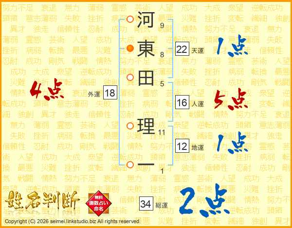 河東田理一さんの天運は22画の1点!
