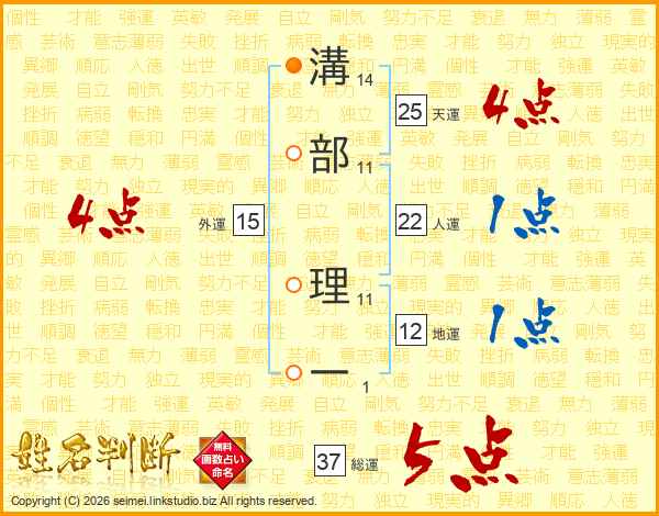 溝部理一さんの総運は37画の5点!