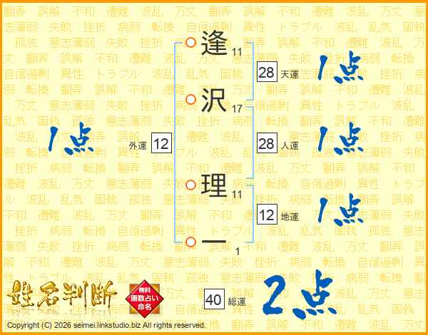 逢沢理一さんの総運は40画の2点!