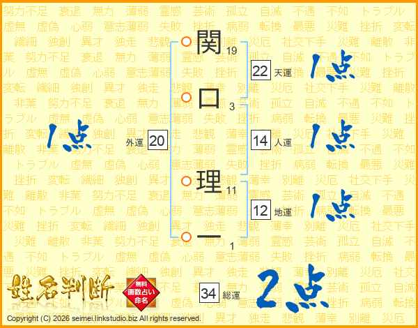 関口理一さんの天運は22画の1点!