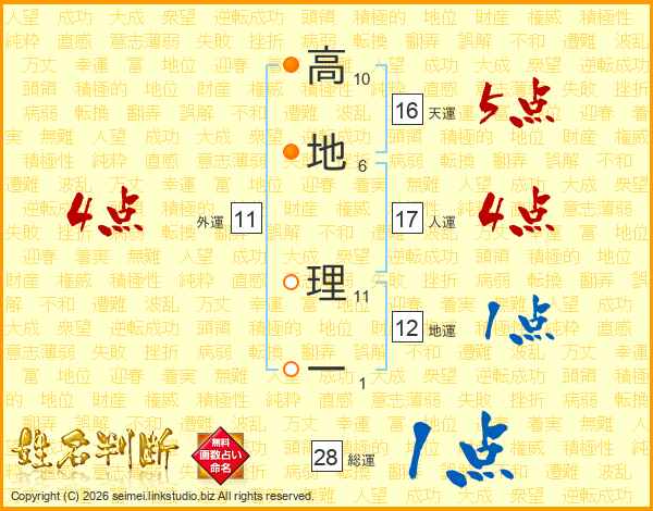 高地理一さんの人運は17画の4点!