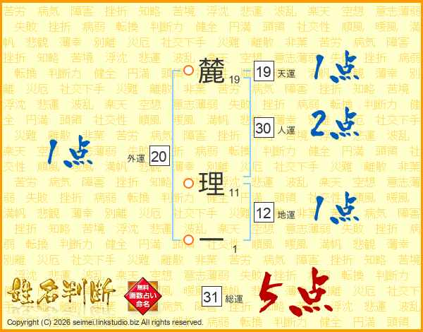 麓理一さんの総運は31画の5点!