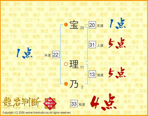宝理乃さんの総運は33画の4点!