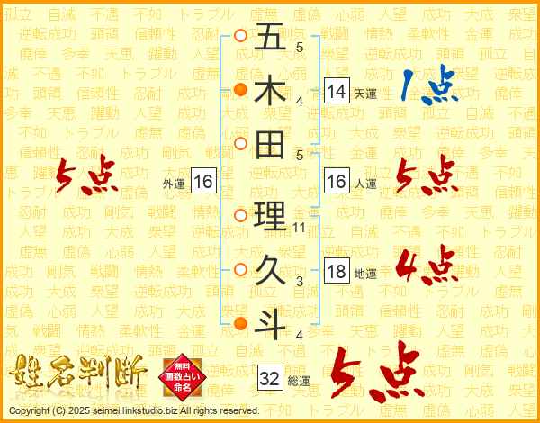五(5画)木(4画)田(5画) 理(11画)久(3画)斗(4画)