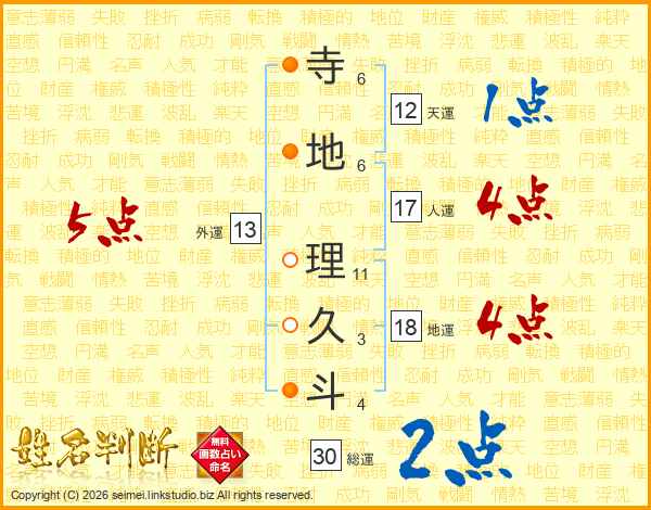 寺地理久斗さんの人運は17画の4点!
