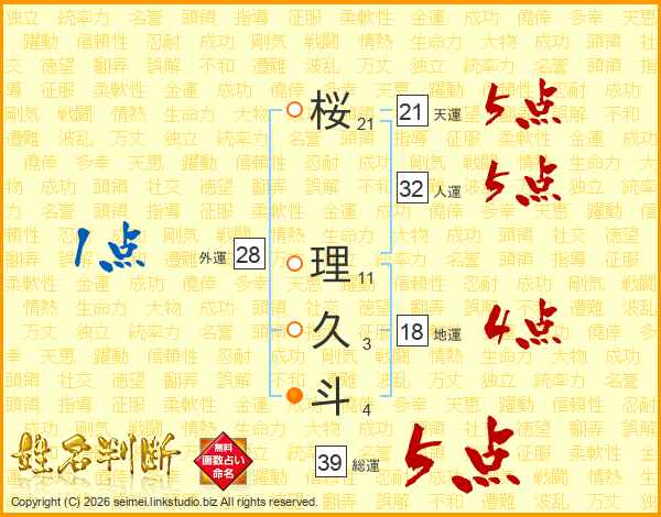 桜理久斗さんの総運は39画の5点!