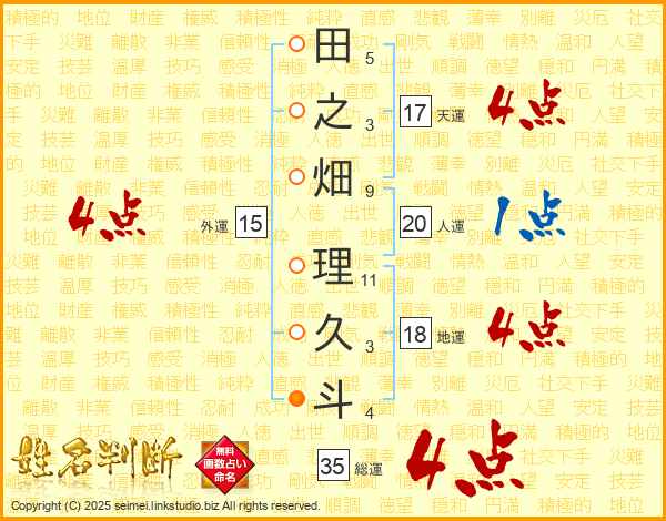 田之畑理久斗さんの総運は35画の4点!