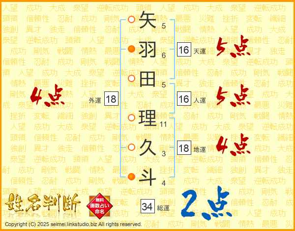 矢(5画)羽(6画)田(5画) 理(11画)久(3画)斗(4画)