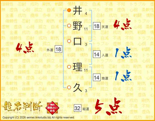 井(4画)野(11画)口(3画) 理(11画)久(3画)