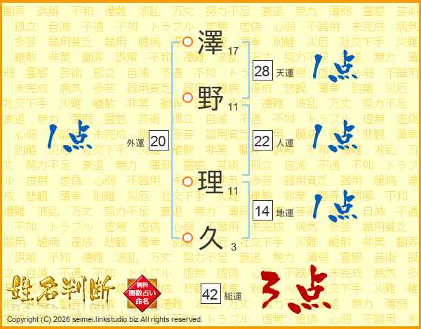 澤野理久さんの総運は42画の3点!