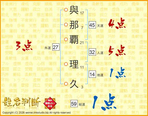 與那覇理久さんの天運は45画の4点!