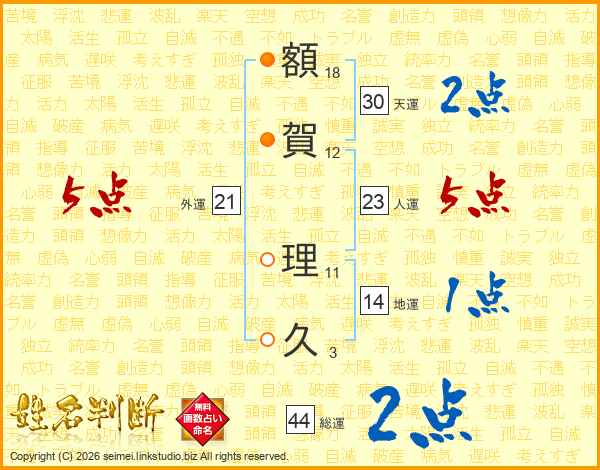 額賀理久さんの総運は44画の2点!