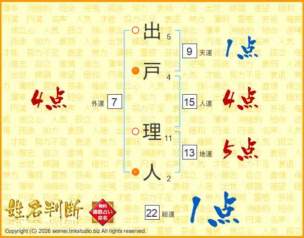出戸理人さんの総運は22画の1点!