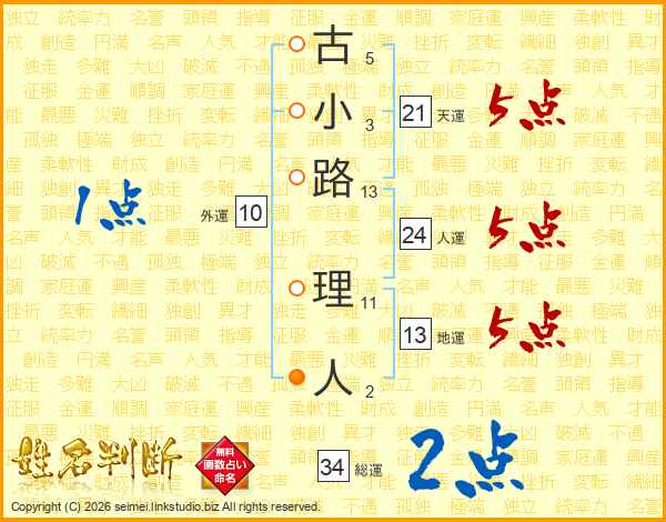 古小路理人さんの天運は21画の5点!