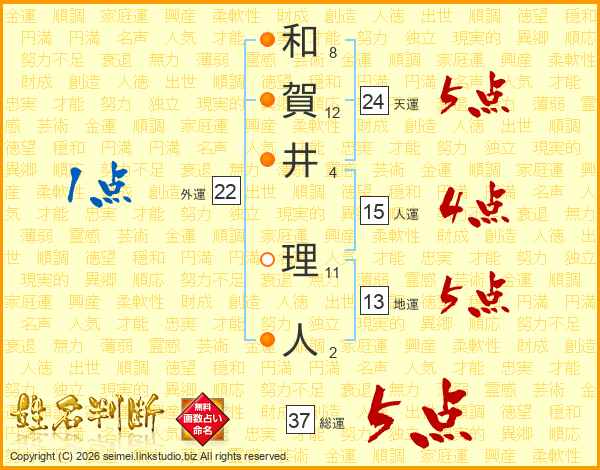 和賀井理人さんの総運は37画の5点!