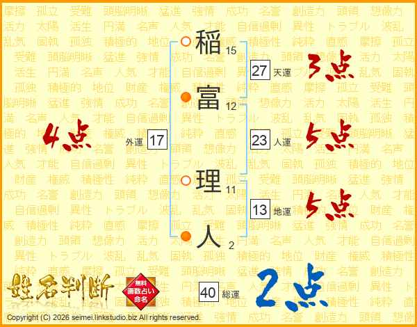 稲富理人さんの人運は23画の5点!