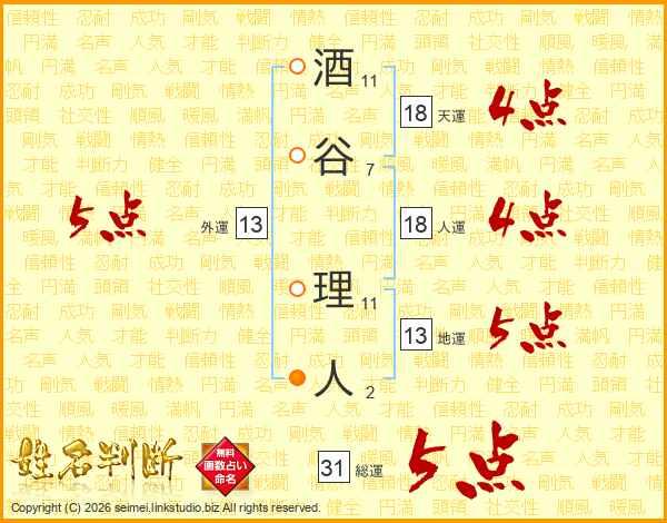 酒谷理人さんの総運は31画の5点!