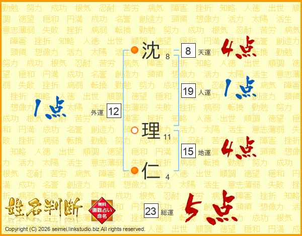 沈理仁さんの総運は23画の5点!