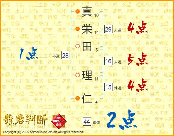 真(10画)栄(14画)田(5画) 理(11画)仁(4画)