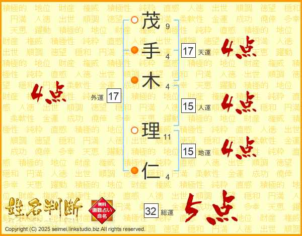 茂手木理仁さんの天運は17画の4点!