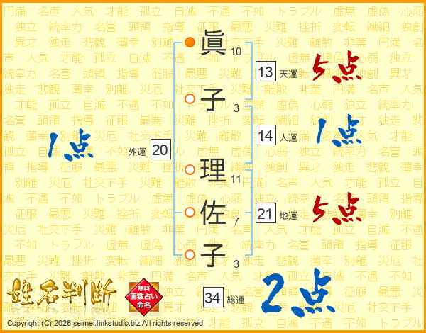 眞子理佐子さんの地運は21画の5点!