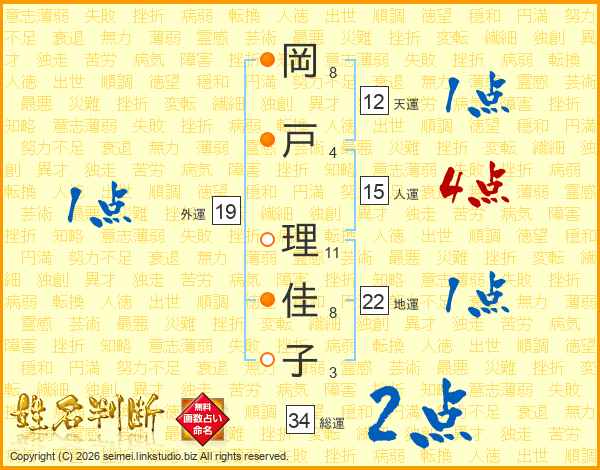 岡戸理佳子さんの総運は34画の2点!