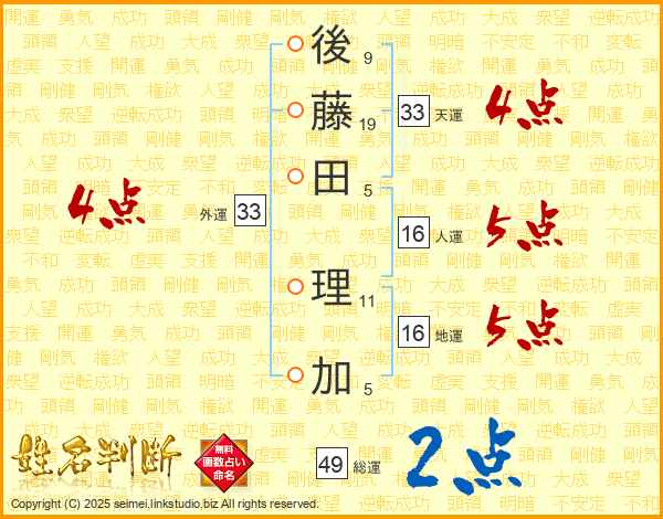 後(9画)藤(19画)田(5画) 理(11画)加(5画)