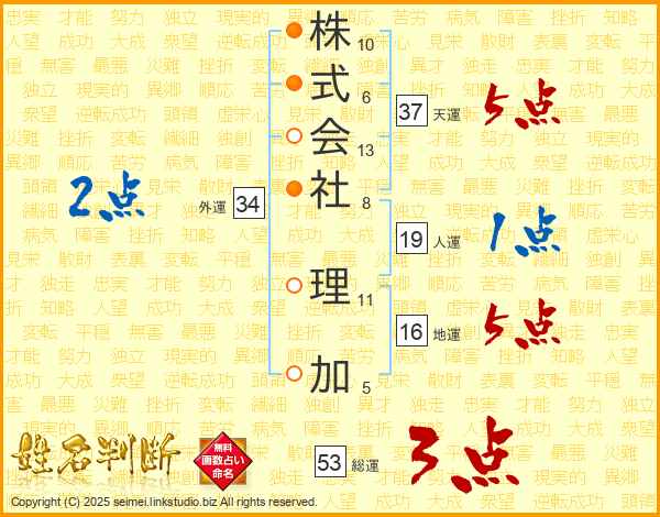 株式会社理加さんの総運は53画の3点!