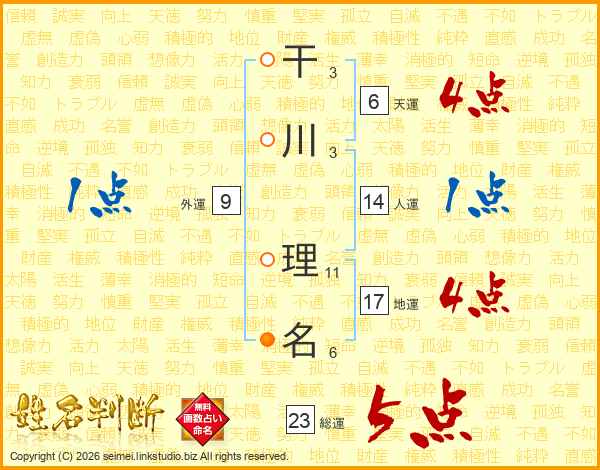 干川理名さんの総運は23画の5点!