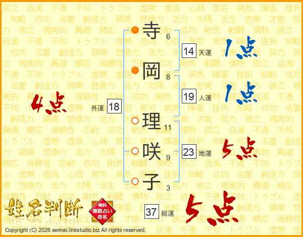 寺岡理咲子さんの総運は37画の5点!