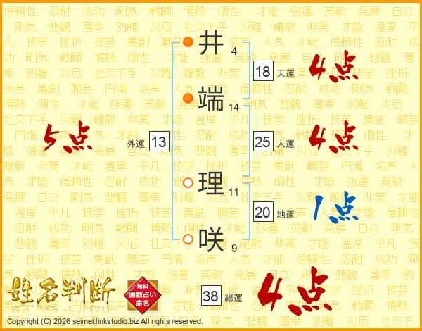 井端理咲さんの総運は38画の4点!