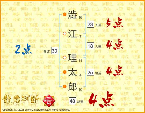 澁江理太郎さんの総運は48画の4点!