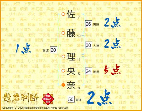 佐藤理央奈さんの天運は26画の2点!