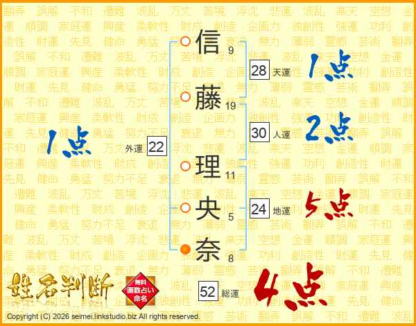 信藤理央奈さんの総運は52画の4点!