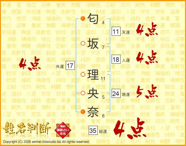 匂坂理央奈さんの外運は17画の4点!