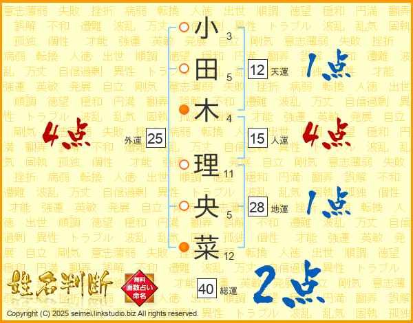 小田木理央菜さんの総運は40画の2点!