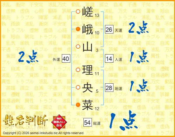 嵯峨山理央菜さんの天運は26画の2点!