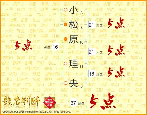 小(3画)松(8画)原(10画) 理(11画)央(5画)