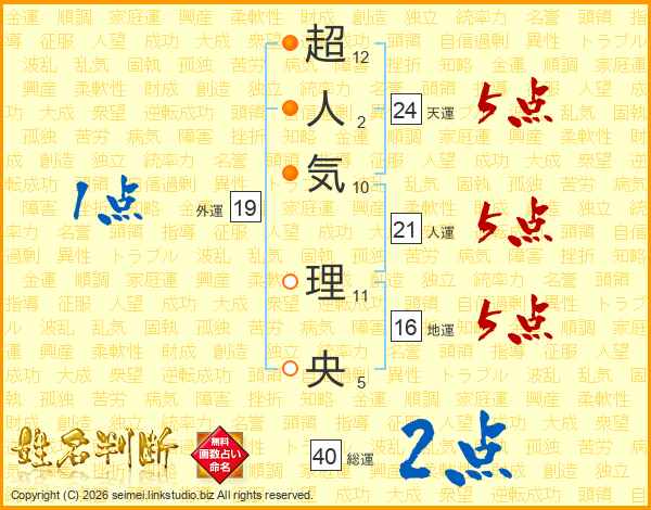 超人気理央さんの天運は24画の5点!