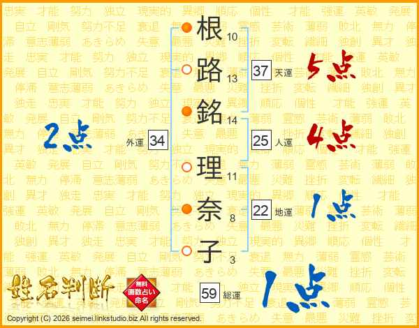 根路銘理奈子さんの総運は59画の1点!