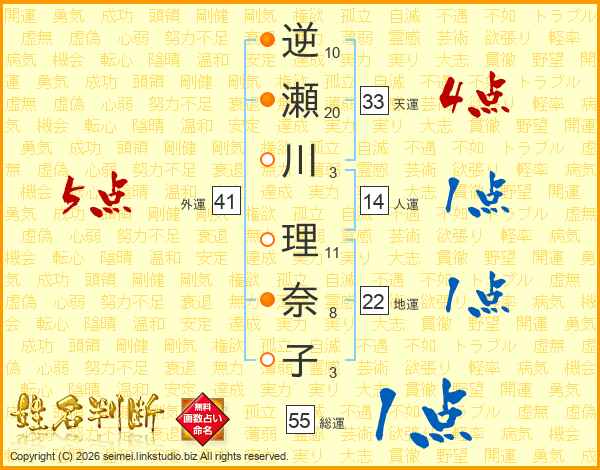 逆瀬川理奈子さんの総運は55画の1点!