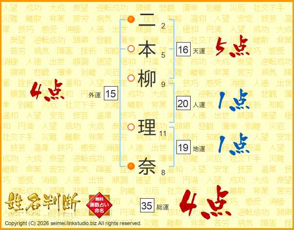 二本柳理奈さんの総運は35画の4点!
