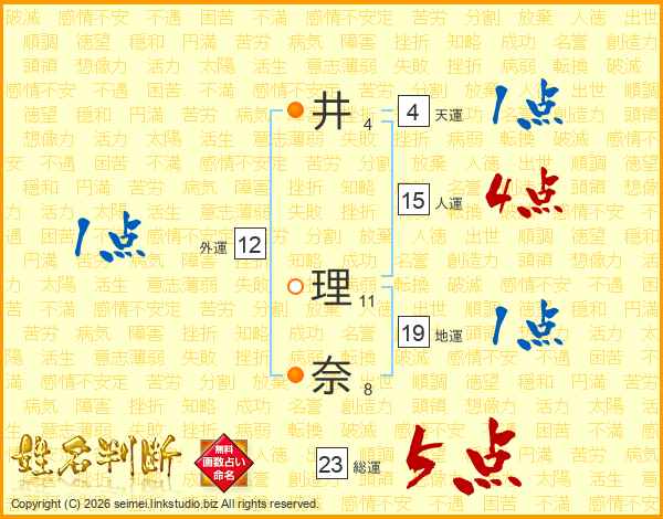 井(4画) 理(11画)奈(8画)