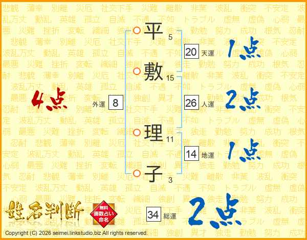 平敷理子さんの人運は26画の2点!