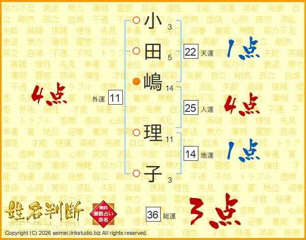 小田嶋理子さんの総運は36画の3点!