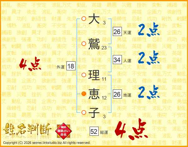 大鷲理恵子さんの総運は52画の4点!