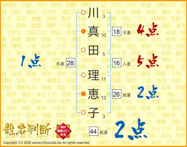 川真田理恵子さんの総運は44画の2点!